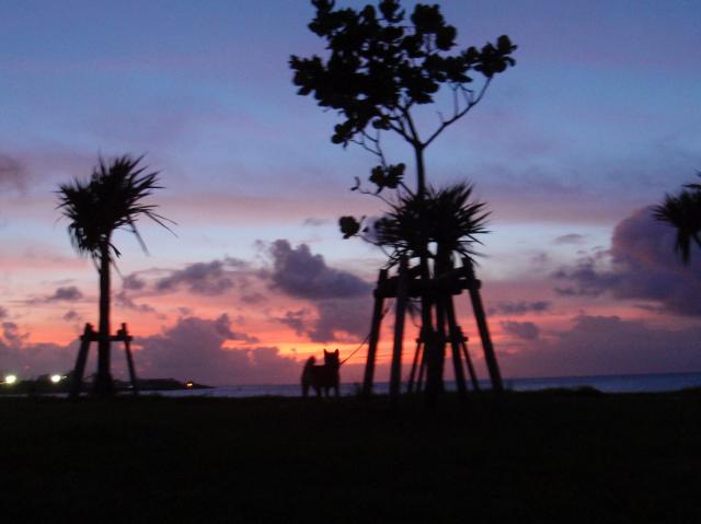 毎日夕暮れ時に宜野湾市の海岸通りを一緒に散歩する。