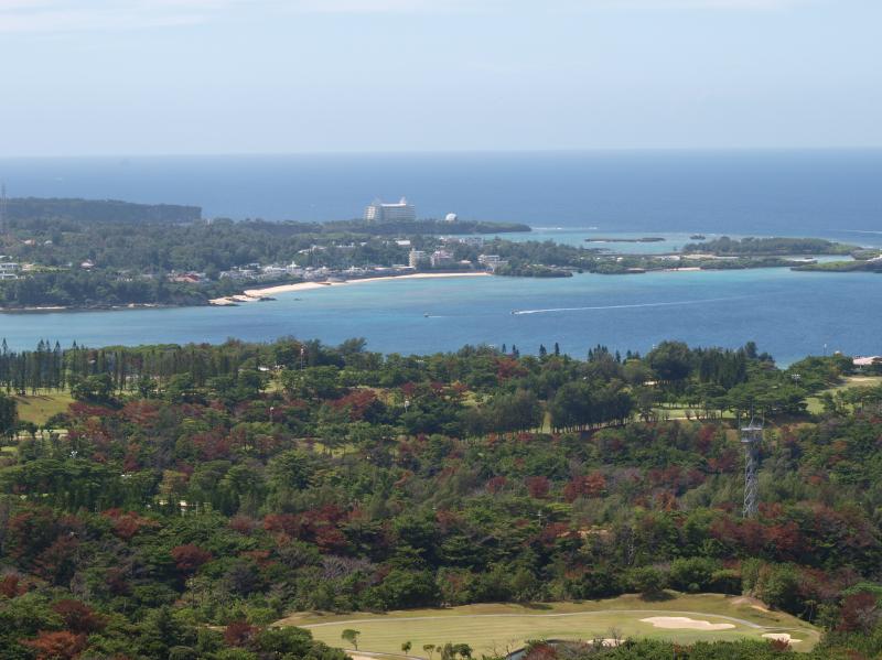 頂上付近は見晴らし台のようになっていて、そこから見渡すと海のブルーと森のグリーンが折り重なったコントラストが美しい。
