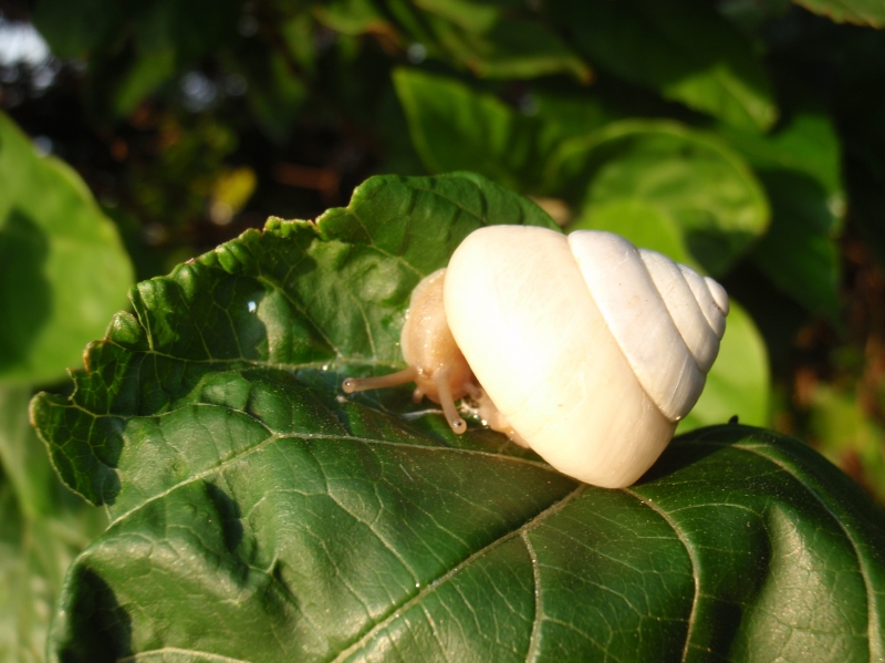 黄色いものや白帯と黒帯の縞々模様を持つものなど色彩変異が大きい。一か所で様々な色彩パターンが見られておもしろいカタツムリだ。ただし浦添大公園で生活するのものはなぜか乳白色の殻を持つヤツばかりである。遺伝変異が固定してしまっているのかなぁ。