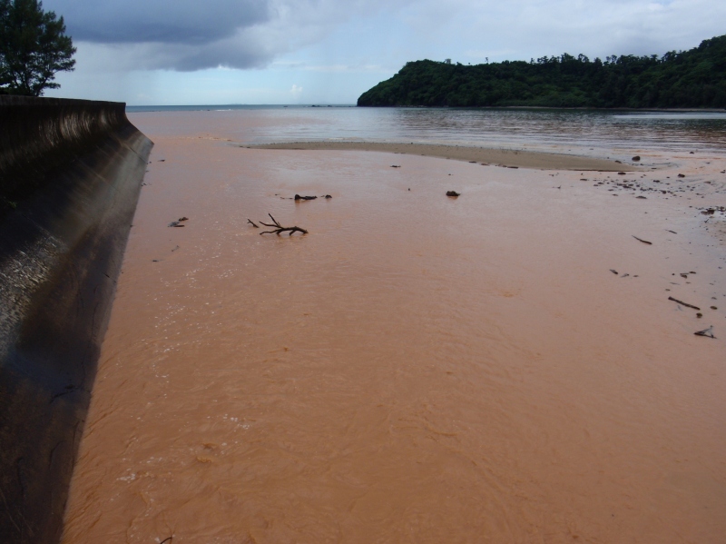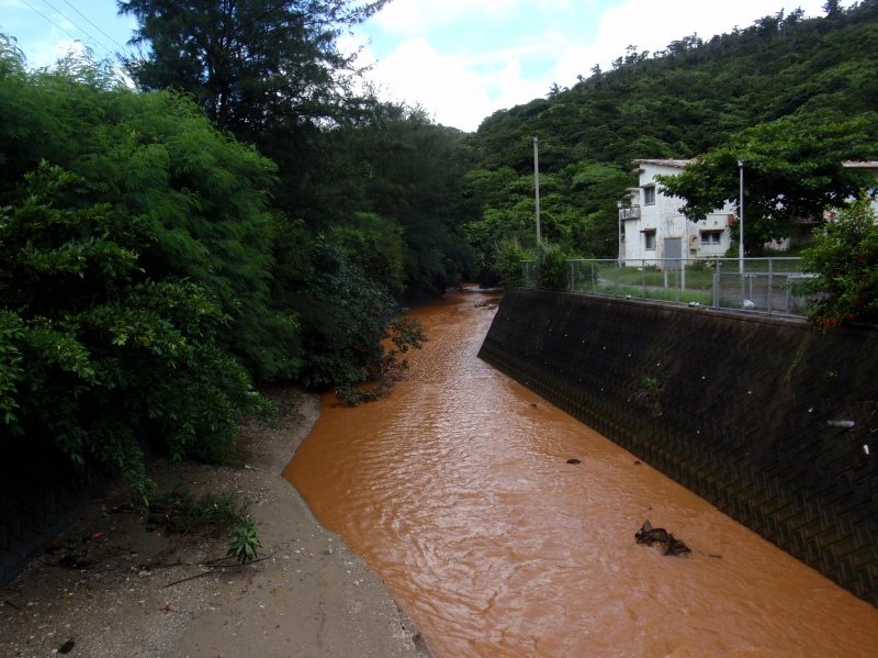 ふもとからは山を見上げても分らないが、大宜味村の山の中は農地開発のため山肌がところどころむき出しになっている。だから雨が降ると赤土が何の抵抗もなく河川に流入する。この時大宜味村を上空から見下ろせば、すべての河川は赤い血の流れる血管のように見えるのだろうか。