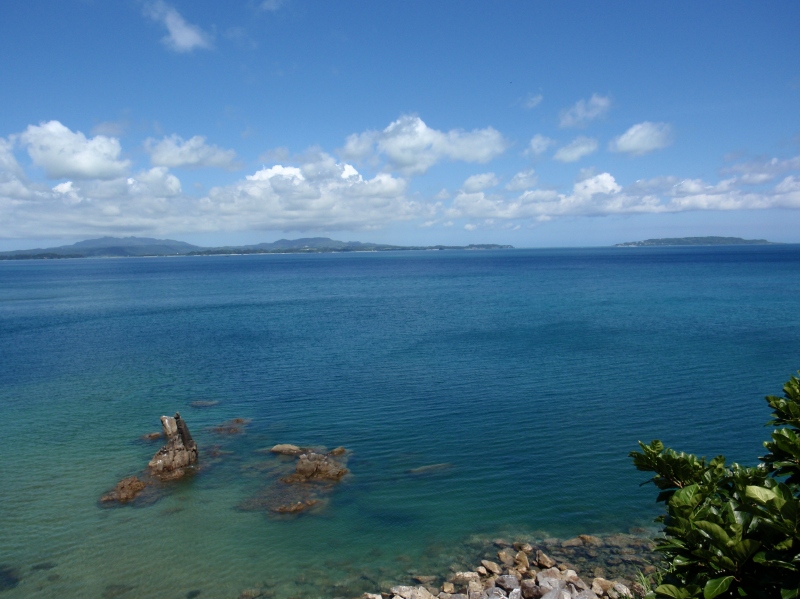 左の写真は大宜味村平南川(ヘナンガワ)河口前に広がる何とも美しい海。絶景だね!!! (ところが雨が降ると...結果は一番下に...)