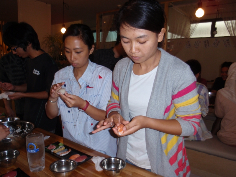 | 自分で握ったとは思えないっ!!! | 美味しいねっ!!! サイコー!!! | 講師のお二人です |