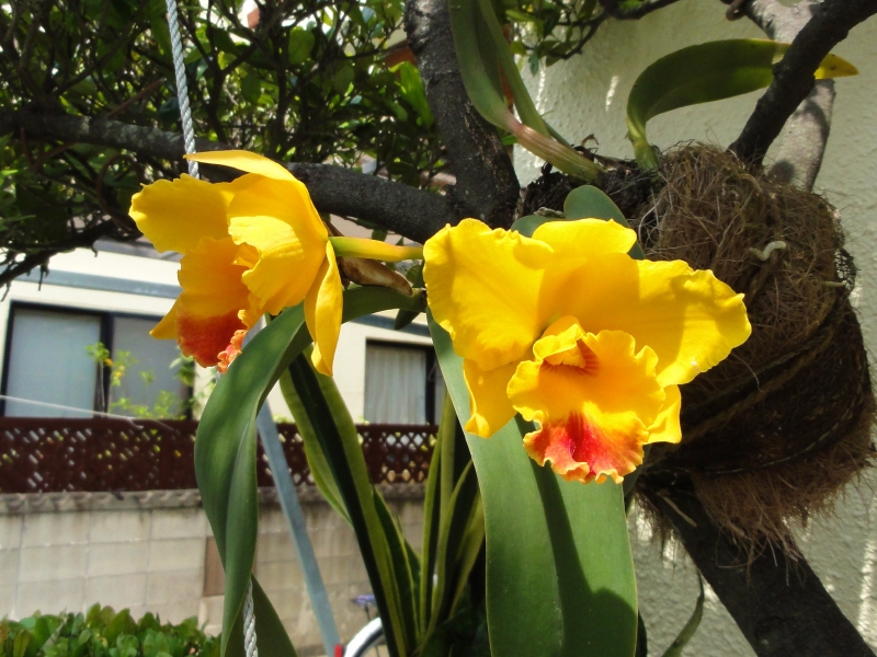 これもラン。黄色いカトレア。本土では、ほとんどのカトレアは温室で育てられるが、沖縄はそれがいらないから良いね。