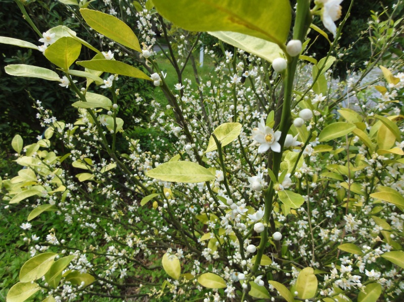 8-9月には、チョー酸っぱいミカンになる。こんなに花が咲いて…ぜんぶ実になるのかな?