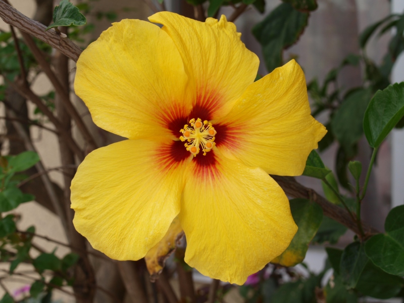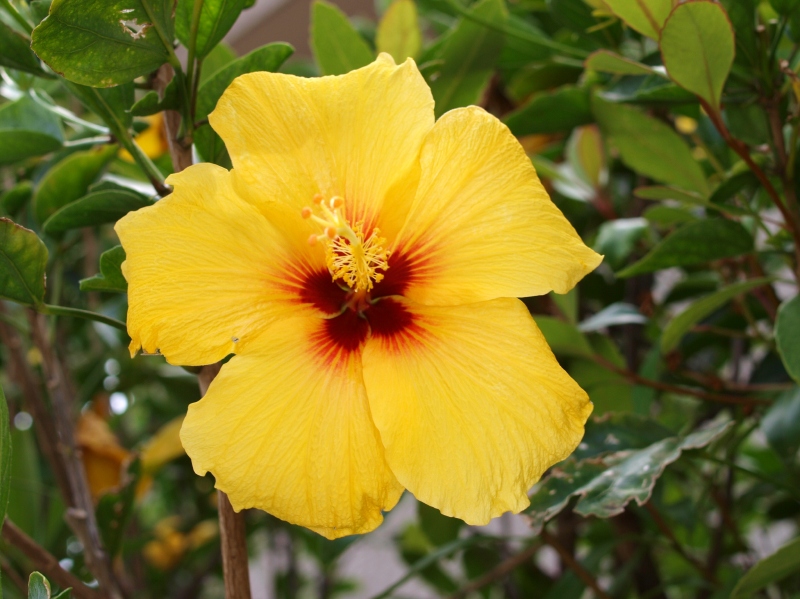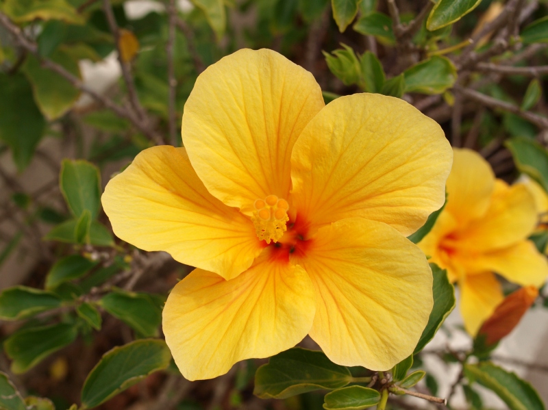 ウチの住宅地のあっちこっちでハイビスカスが咲いている。