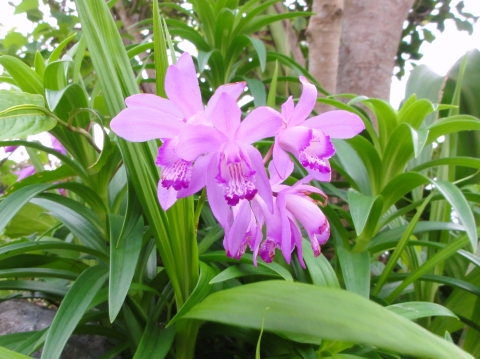 国頭村の山あいの民家の庭先で咲いていたシラン