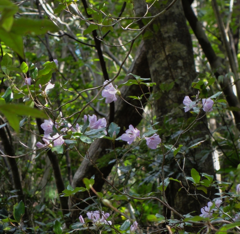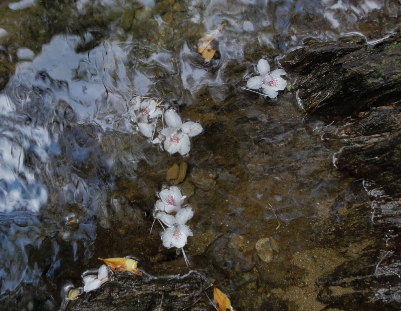 ほとんど人が訪れることのない渓流ではサクラツツジの花が漂っていた