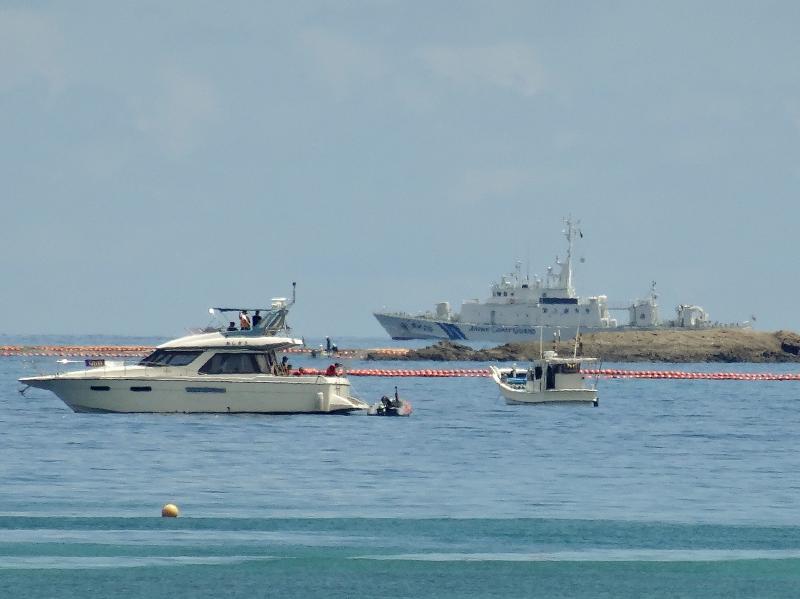 でも望遠で見ると辺野古崎はウキのフェンスで囲まれ、その外側を海上保安庁の巡視艇が誰も近づかないようにガードしていました。平和を守る船が平和を願う人たちを排除しているのです。信じられない光景です。