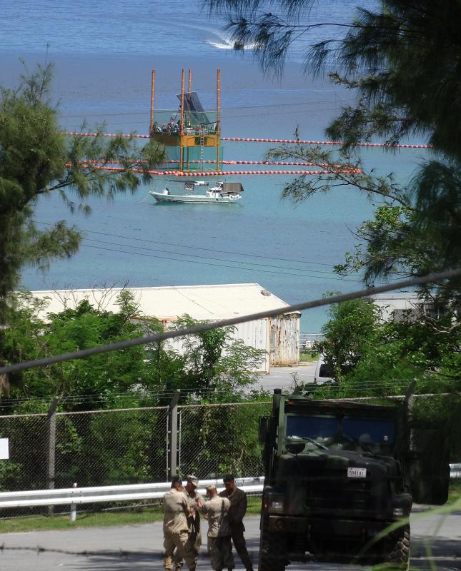 キャンプ・シュワブの端からボーリング地質調査をしている櫓(やぐら)を見ることができます。