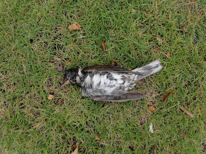 昨日は冷たい雨が朝から台風のように降っているあいにくの天気でした。そんな中、柴犬イチローを連れて散歩をしていると1羽のシロハラが落ちていました。